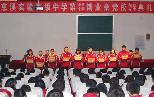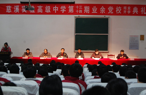 学校党支部书记、校长邵守灿老师作了重要讲话,他回顾了一年来业余党校学习的内容、形式以及学员的收获。向顺利结业的学员表示祝贺,同时也对学员们提出了新的更高的要求,鼓励学员们在今后的学习、工作、生活中要继续努力,朝着自己的目标前进,争取在组织上和思想上早日入党,在各方面成为学生中的楷模和标兵。