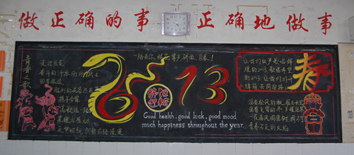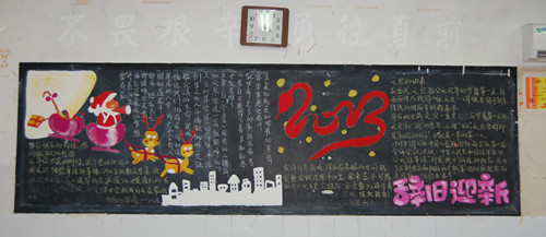 元旦将至,为了让学生在学校紧张的期末复习中也能感受到新年的欢乐,开拓学生视野,12月3日起,我校团委组织开展了“庆元旦、迎新年”黑板报评比活动。各班黑板报都是由学生自己设计、书写、绘画,围绕节日主题,精心设计版面,精选内容,内容丰富。