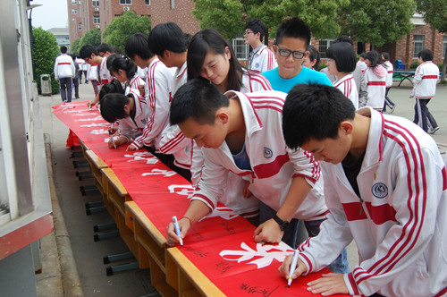在团委学生会工作人员的组织下,广大同学纷纷在横幅上签下自己的名字,将当代中学生的爱国之情、报国之志书写于此。签名活动旨在呼吁同学们铭记历史,继承优良传统,增强团员青年的责任感和使命感,进一步坚定跟党走中国特色社会主义道路的信念,表达了同学们用实际行动报效祖国的决心,扩大五四精神对广大青年学生的影响。