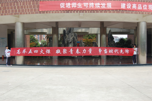 为纪念五四运动93周年暨建团90周年,5月4日中午,我校在学校小操场开展“高举五四火炬 凝聚青春力量 争当时代先锋”签名活动。