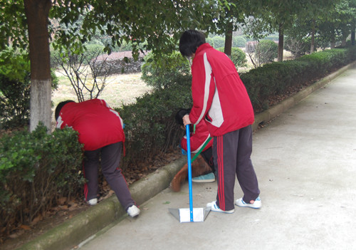 为了给同学们营造一个干净舒适的学习生活环境,志愿者们不怕脏、不怕累,干劲冲天。经过1个小时的劳动,整个校园彻底改变了面貌。