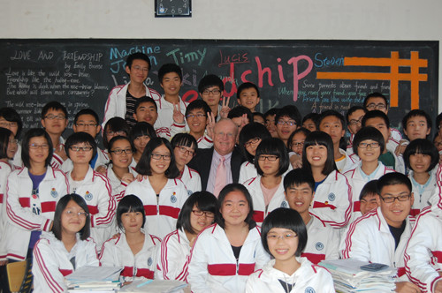 交流访问中,David Benoit主席在学校领导及赛达留学培训学校负责人的陪同下参观了我校校园,并走进教学课堂和学生零距离地接触与交流。学生流利的英语口语、我校优美的校园环境以及先进的教学设备博得了David Benoit主席的赞口不绝。