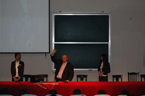 随后,在学校报告厅,David Benoit主席又为我校学生及部分家长做了一场关于美国教育文化的讲座。他风趣幽默的语言和声情并茂的举止赢得了学生和家长的阵阵掌声。