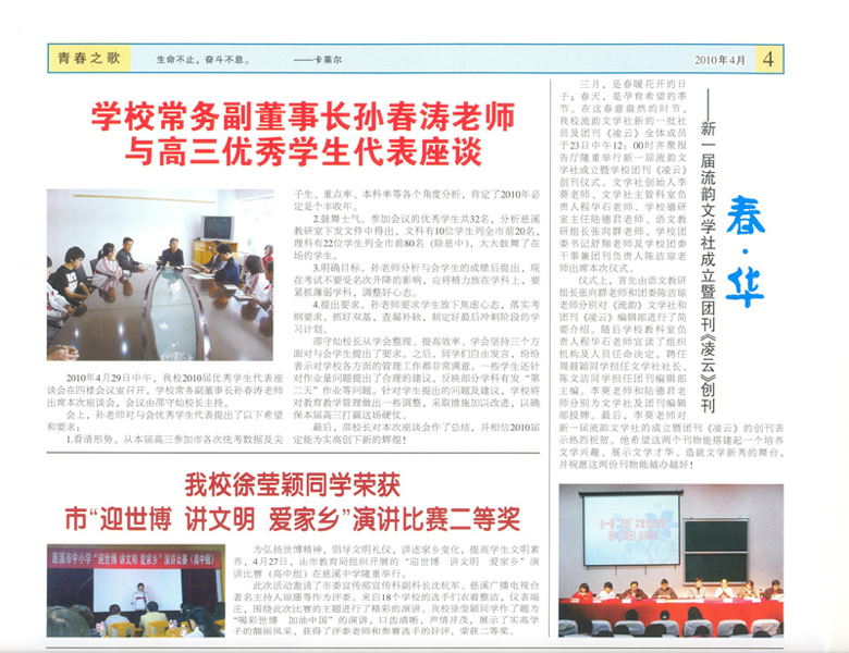 热烈祝贺我校团刊《凌云》创刊号正式发刊