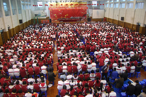 3月1日上午,实验高中2000余名师生齐聚一堂,在学校体育馆隆重举行新学期开学典礼暨高三“百日冲刺”动员大会。会议由陈庭副校长主持。