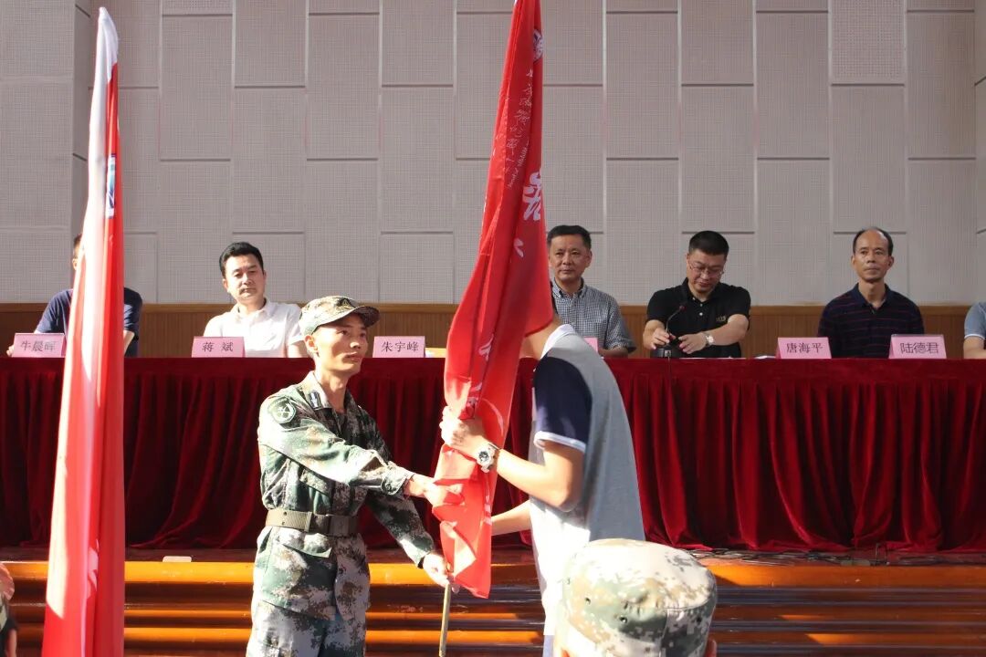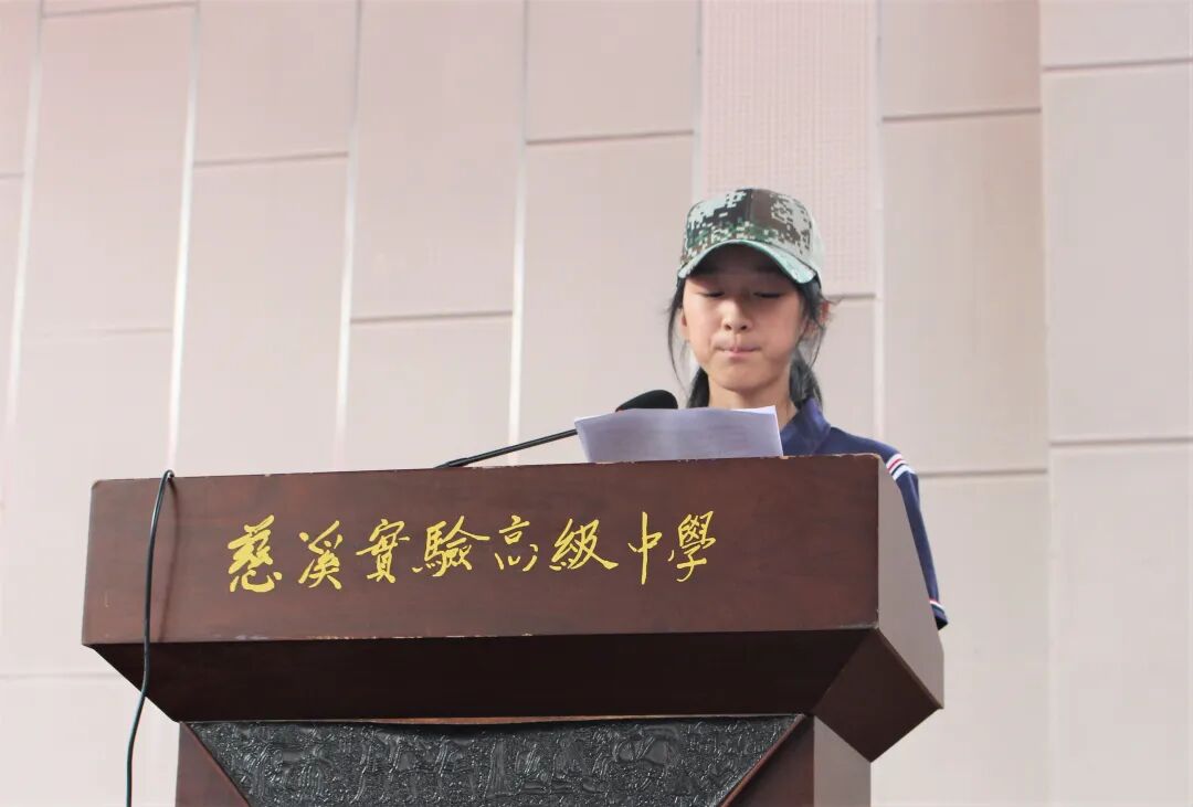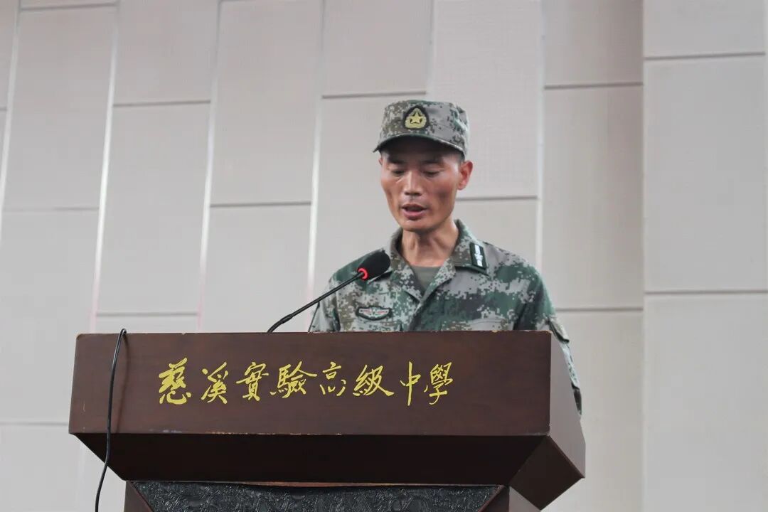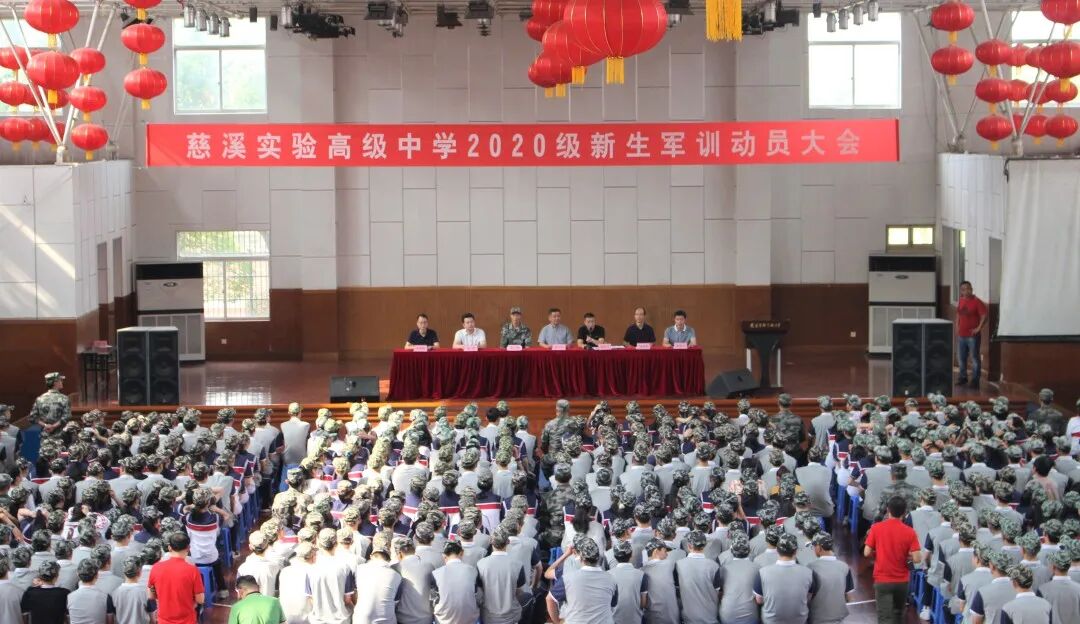 7月28日下午,伴着雨后清爽的空气,慈溪实验高中2020级新生军训动员大会在学校体育馆隆重举行。慈溪市人民武装部训保中心副主任朱宇峰,学校校长邵守灿,副校长蒋斌,副校长唐海平,党总支委员、工会主席陆德君,政教处主任、团委书记牛晨晖,高一年段主任杨崇杰出席大会。 邵守灿校长致辞 邵守灿校长致开幕辞,他代表学校向本次承训官兵表示感谢,向全体新生表示欢迎。期望同学们能够通过此次军训,培养自己坚定的政治信念,严密的组织纪律,良好的精神风貌,高度的文明素养,努力成为目标远大、道德高尚、素质优良的一代新人。 朱宇峰教官讲话 慈溪市人民武装部训保中心副主任朱宇峰同志在军训动员讲话中表示希望同学们服从命令,听从指挥,认真对待、充分认识军训活动的重要意义。进一步加强组织纪律性,增强集体荣誉感,展现个人与集体良好的精神风貌。 孙棉棉同学发言 高一(6)班孙棉棉同学代表全体新生作军训表态发言,将以饱满的热情和昂扬的斗志全力投入军训,坚决服从教官安排,听从教官指挥,不折不扣地完成军训各项任务。 牛晨晖主任讲话 随后,学校政教处主任、团委书记牛晨晖老师对军训安排及纪律要求作了布置。要求全体新生严守纪律,磨炼意志,以高昂的斗志、良好的精神状态投入到军训活动中,为今后的高中学习和生活打下坚实基础。 大会最后,朱宇峰教官为受训的12个班级授旗。一面面班旗昭示着新生们昂扬的斗志与不屈的意志,拉开了2020级新生军训的序幕。 授旗仪式 ▲ 军训剪影