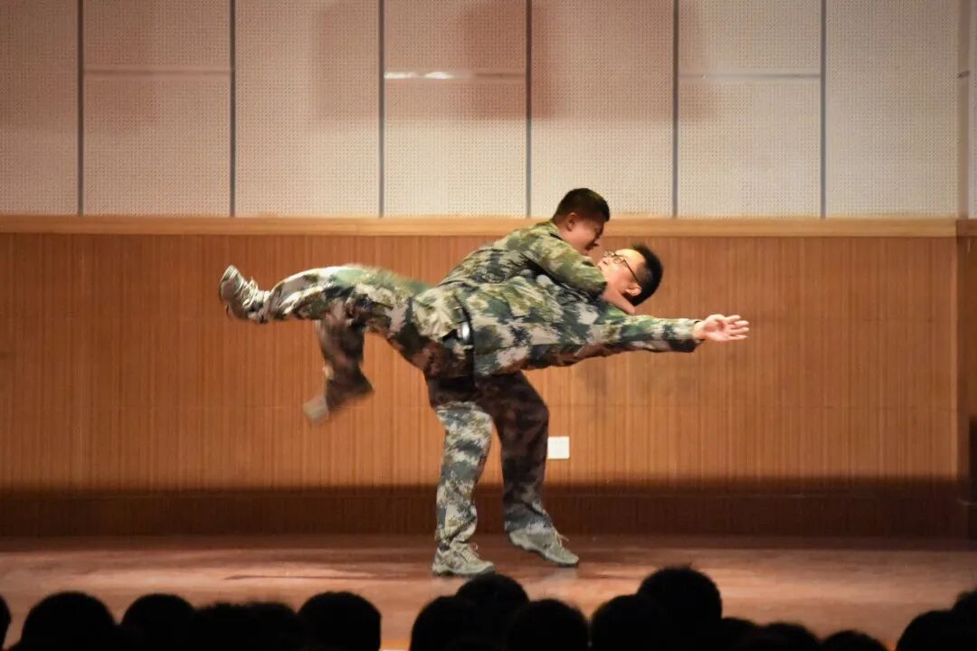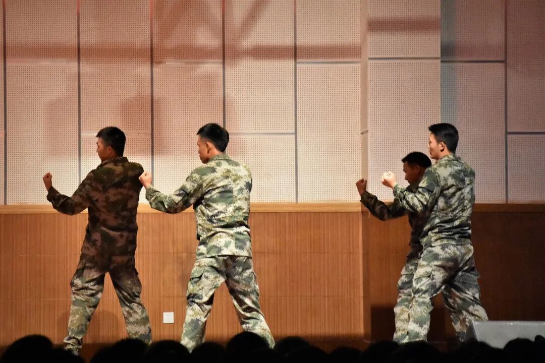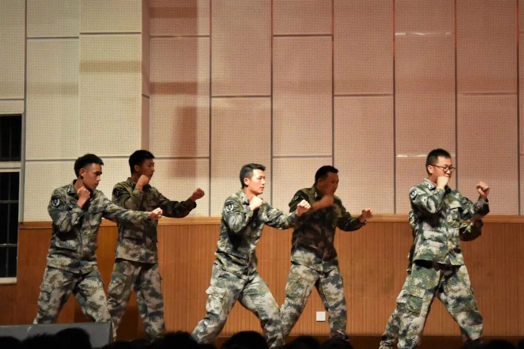 精彩瞬间回顾 01 舞蹈《只因你太美》一(1)班 歌曲《我的梦》一(2)班 歌曲《岁月神偷》 一(3)班 歌曲《化身孤岛的鲸》 一(4)班 歌曲《追光者》 一(5)班 拉丁舞《伦巴》一(6)班 教官合唱《强军战歌》 歌曲《微微》 一(7)班 歌曲《成都》一(8)班 舞蹈《微微》 一(9)班 歌曲《天空中最亮的星》 一(10)班 钢琴《梦中的婚礼》 一(11)班 歌曲《演员》一(12)班 擒拿拳 教官 军训不是只有汗流浃背和铁骨铮铮,还有歌舞曼妙和琴声悠扬。新高一的同学们在实验高中体育馆的舞台上,使出浑身解数,既展现了自身的特长,表现了鲜明的个性。大家欢聚一堂,放声歌唱,尽情舞蹈,展现了青春的激情与活力。
